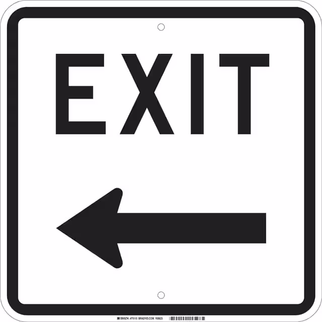 75113B120,18X18,BLK/WHT,EXIT ONLY |
