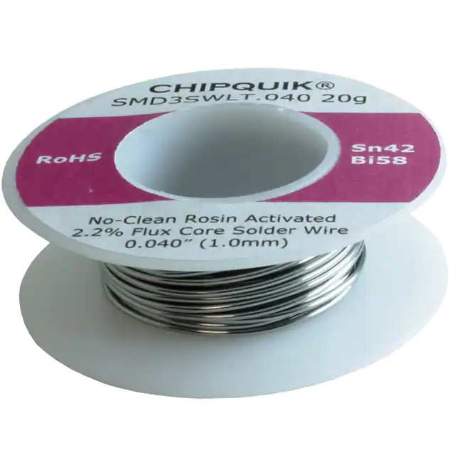Bulk | SMD3 | Active | Wire Solder | Bi58Sn42 (58/42) | 0.040 (1.02mm) | 280°F (138°C) | No-Clean, Rosin Activated (RA) | - | - | Lead Free | Spool, 0.7 oz (20g) | - | - |